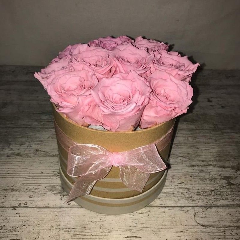 Caixes de cartró rodones de luxe amb les sempre eternes roses rosa de les millors varietats.